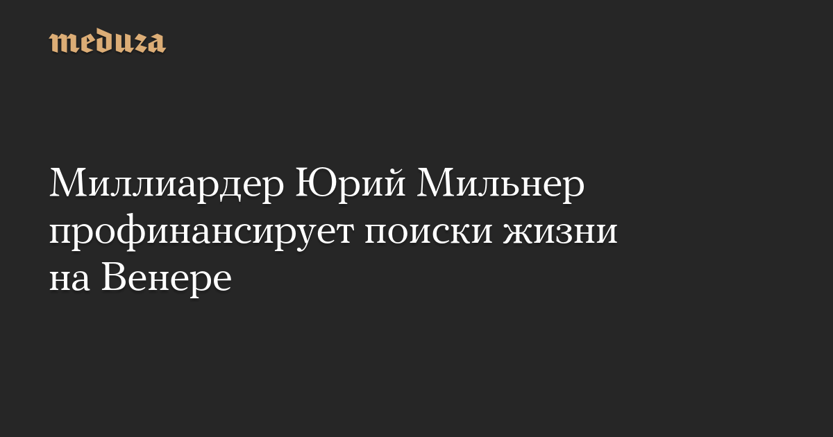 Фонд Breakthrough Initiatives, основанный российско-израильским бизнесменом Юрием Мильнером, профинансирует исследование, направленное на поиски жизни в атмосфере Венеры. Об этом говорится на сайте фонда.