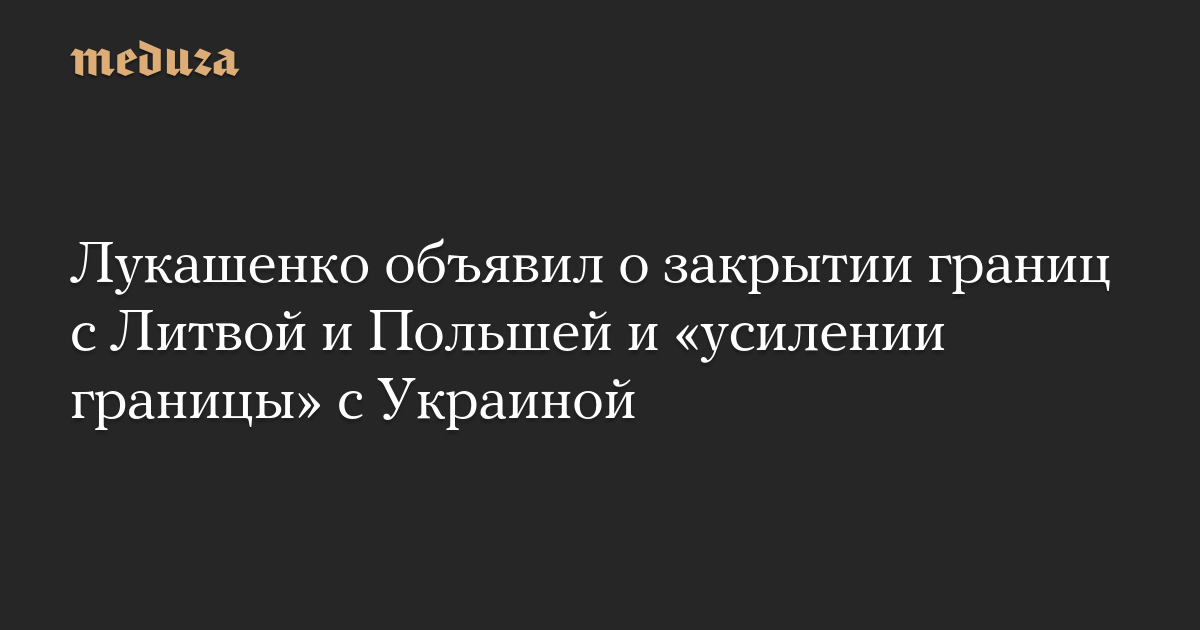 Исправление. В первом варианте заголовка и текста сообщалось, что границу с Украиной Белоруссия тоже закроет. Как выяснилось после публикации видео с выступления Лукашенко, он сказал об «усилении», а не закрытии границы с Украиной.