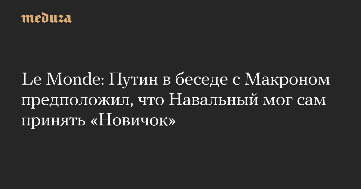 Le Monde: Путин в беседе с Макроном предположил, что Навальный мог сам принять «Новичок»