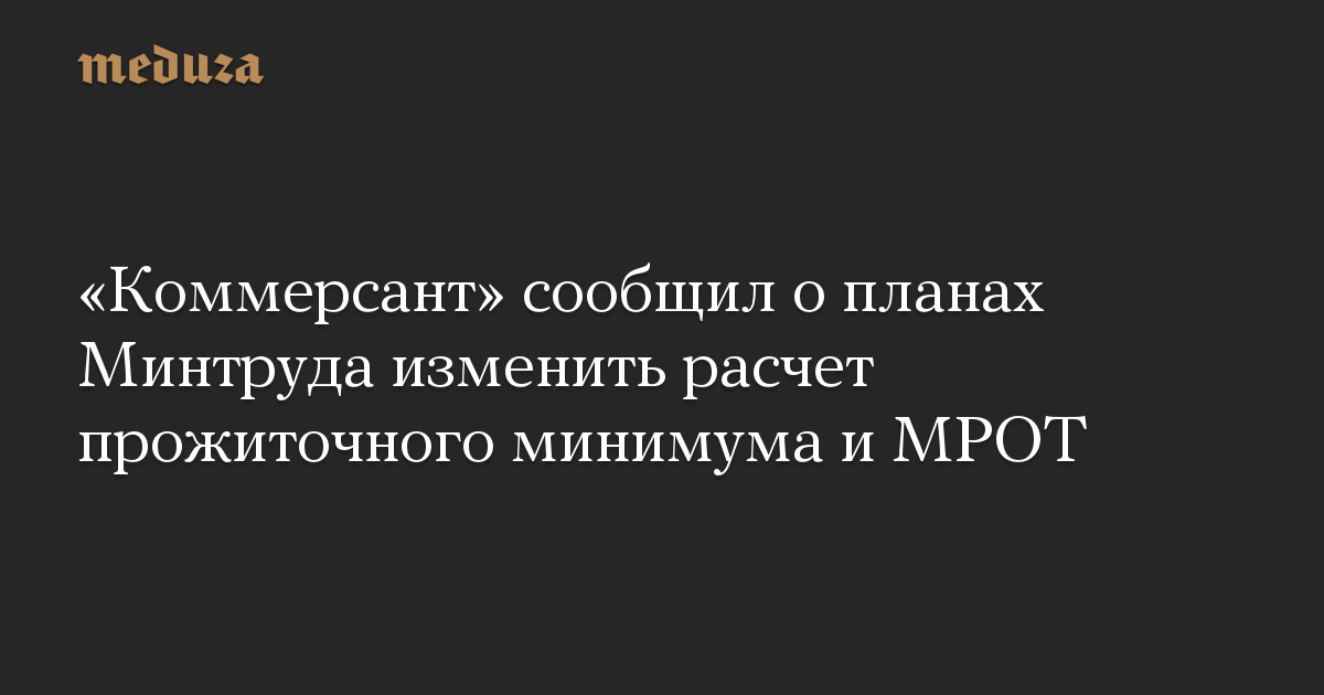 «Коммерсант» сообщил о планах Минтруда изменить расчет прожиточного минимума и МРОТ