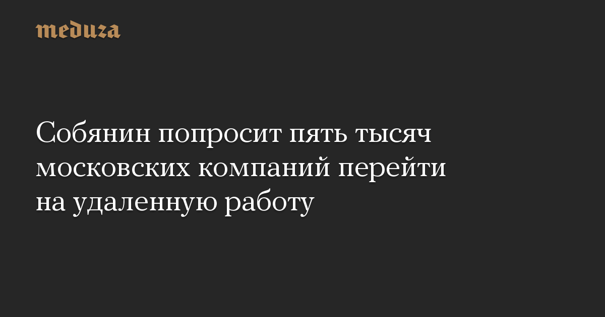Собянин попросит пять тысяч московских компаний перейти на удаленную работу