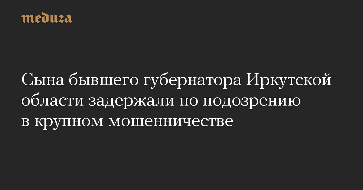 Сына бывшего губернатора Иркутской области задержали по подозрению в крупном мошенничестве