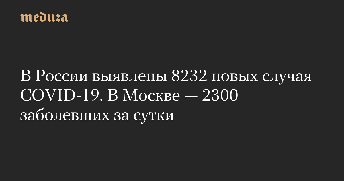 В России выявлены 8232 новых случая COVID-19. В Москве — 2300 заболевших за сутки
