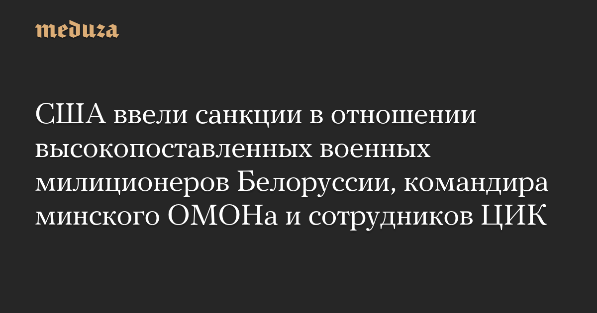 США ввели санкции в отношении высокопоставленных военных милиционеров Белоруссии, командира минского ОМОНа и сотрудников ЦИК
