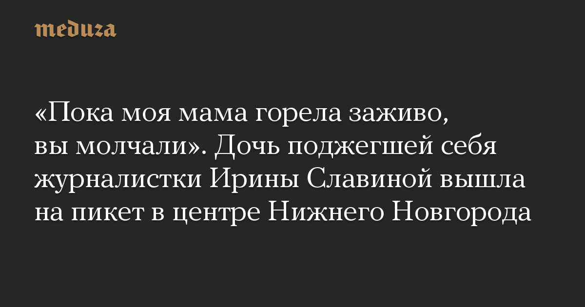 «Пока моя мама горела заживо, вы молчали». Дочь поджегшей себя журналистки Ирины Славиной вышла на пикет в центре Нижнего Новгорода