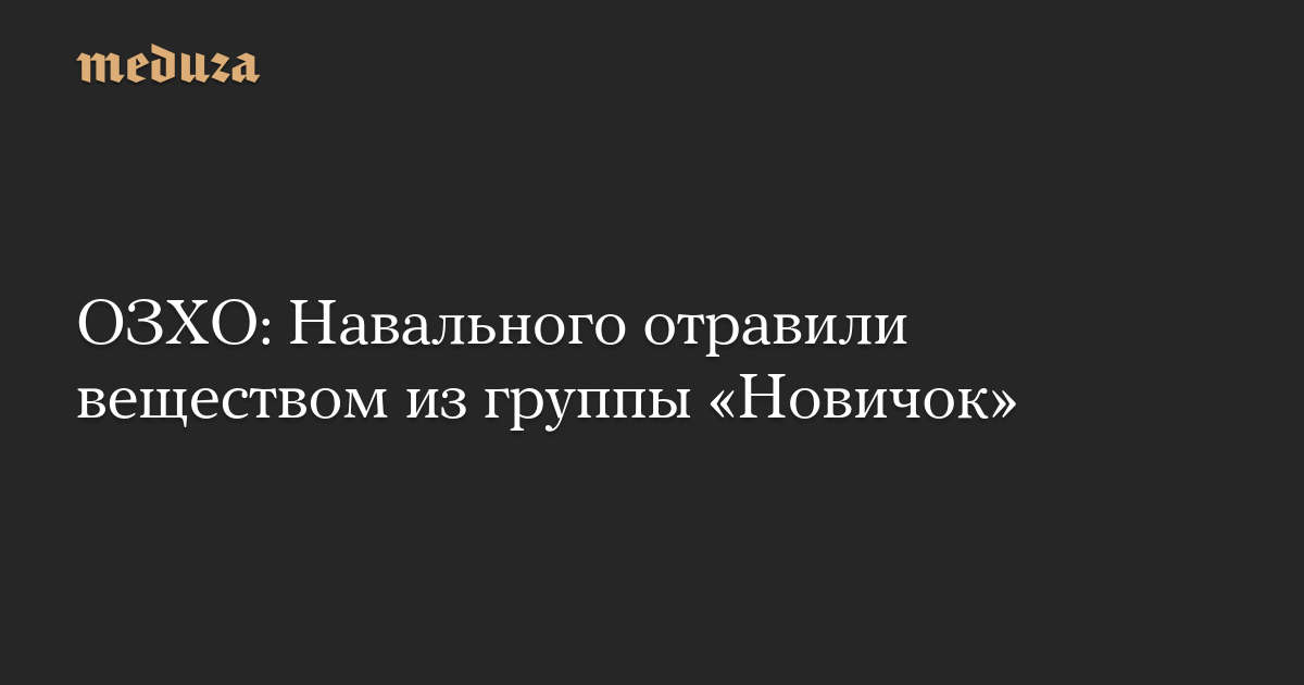 Исправление. Первоначально в заголовке новости мы уточняли, что вещество, которым отравили Навального, «формально не входит в список запрещенных». Мы удалили эту часть заголовка, потому что это не имеет большого значения: ОЗХО все равно сможет открыть официальное расследование против России на основании самого факта применения химического оружия, а западные страны — ввести санкции. Мы благодарим коллег, указавших нам на неточность. «Медуза» приносит извинения читателям, Алексею Навальному, его семье и соратникам.