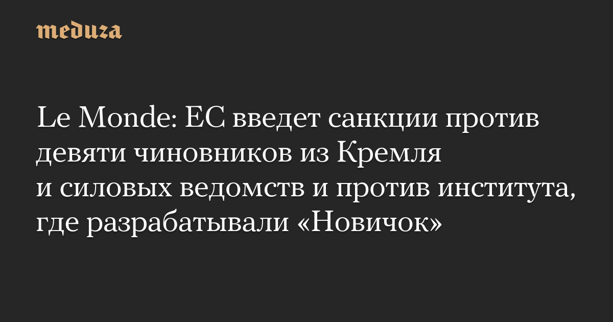 Le Monde: ЕС введет санкции против девяти чиновников из Кремля и силовых ведомств и против института, где разрабатывали «Новичок»