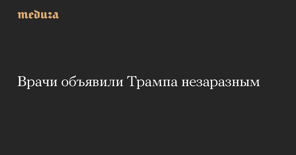 Дональд Трамп больше не считается распространителем коронавирусной инфекции, сообщает The New York Times со ссылкой на Шона Конли, лечащего врача президента США.