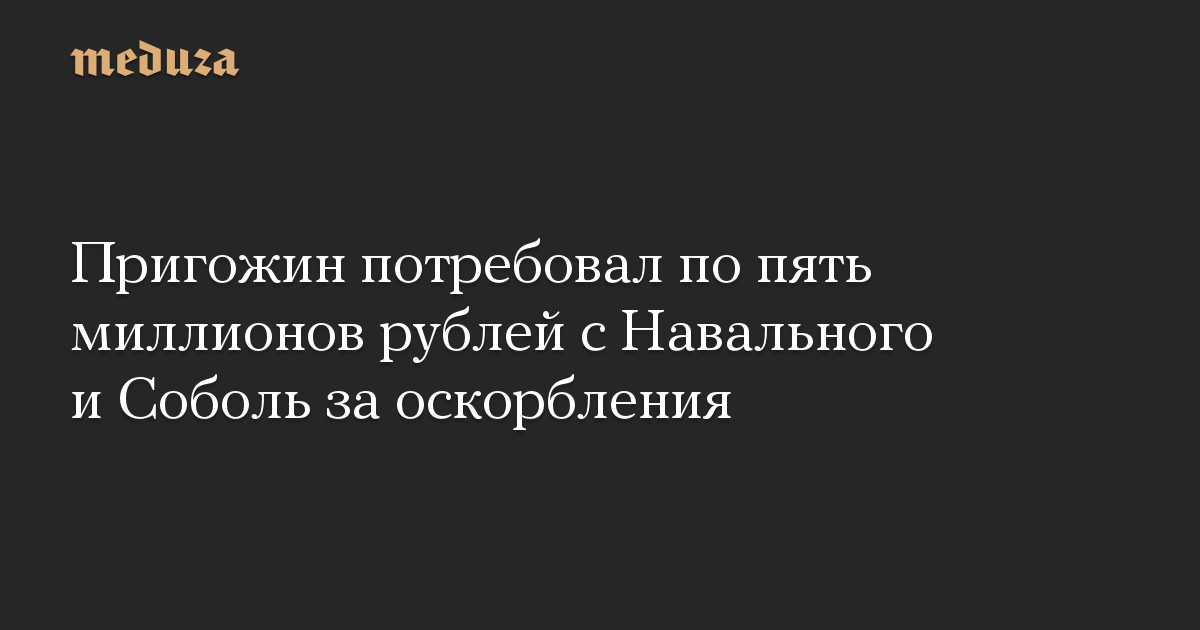 В качестве компенсации морального ущерба Пригожин требует взыскать с Навального и Соболь по пять миллионов рублей.