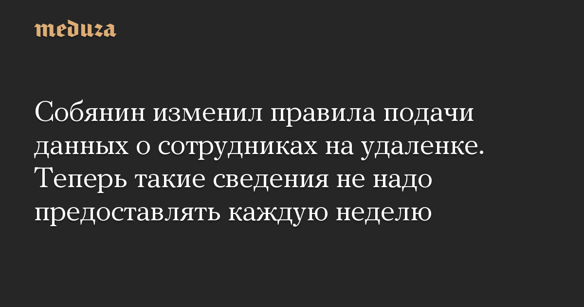 Собянин изменил правила подачи данных о сотрудниках на удаленке. Теперь такие сведения не надо предоставлять каждую неделю