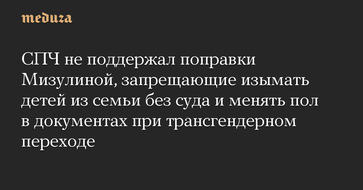 СПЧ не поддержал поправки Мизулиной, запрещающие изымать детей из семьи без суда и менять пол в документах при трансгендерном переходе