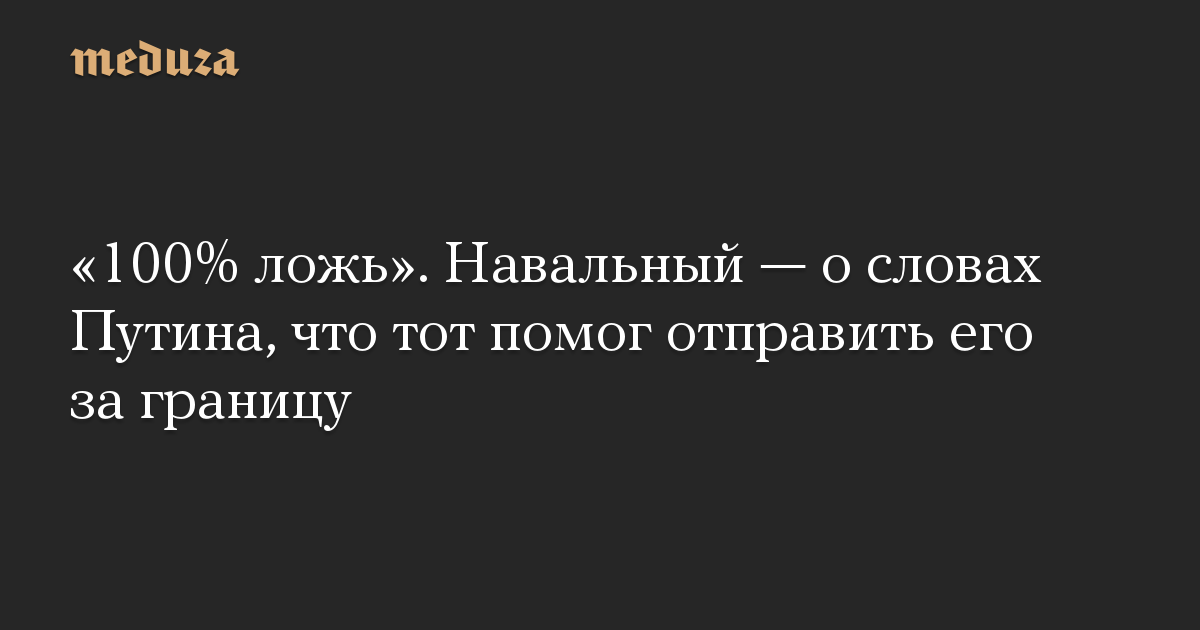 «100% ложь». Навальный — о словах Путина, что тот помог отправить его за границу