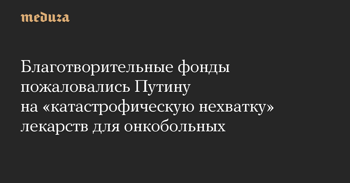 Благотворительные фонды пожаловались Путину на «катастрофическую нехватку» лекарств для онкобольных