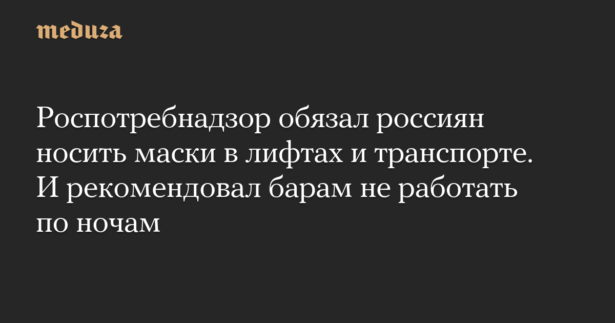 Роспотребнадзор обязал россиян носить маски в лифтах и транспорте. И рекомендовал барам не работать по ночам