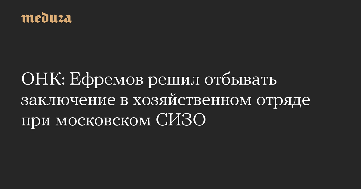 ОНК: Ефремов решил отбывать заключение в хозяйственном отряде при московском СИЗО