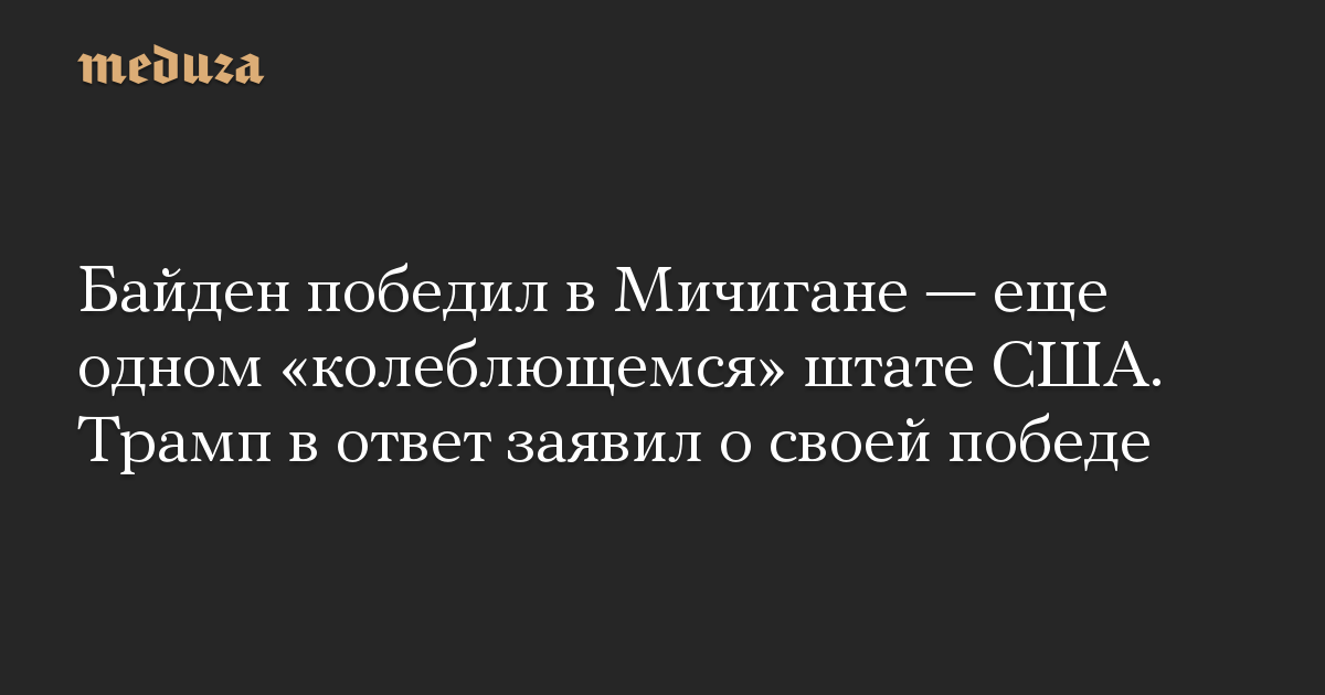 Байден победил в Мичигане — еще одном «колеблющемся» штате США. Трамп в ответ заявил о своей победе
