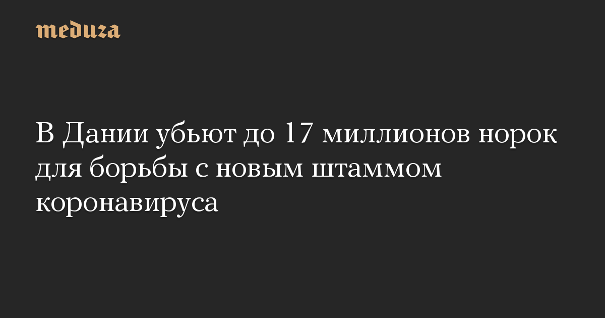 Премьер-министр Дании сообщила о 12 людях, которые заразились новой версией коронавируса, вызванной норками. Во Всемирной организации здравоохранения сказали Reuters, что получили от властей Дании информацию о заражении некоторых людей версией коронавируса с «некоторыми генетическими изменениями».