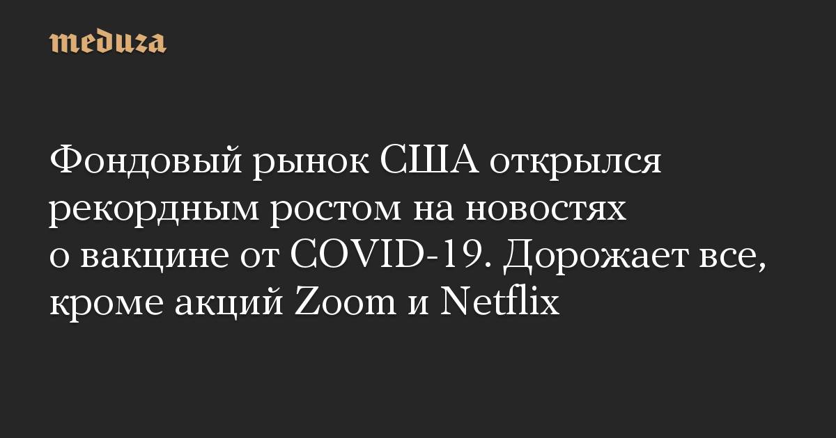 Фондовый рынок США открылся рекордным ростом на новостях о вакцине от COVID-19. Дорожает все, кроме акций Zoom и Netflix