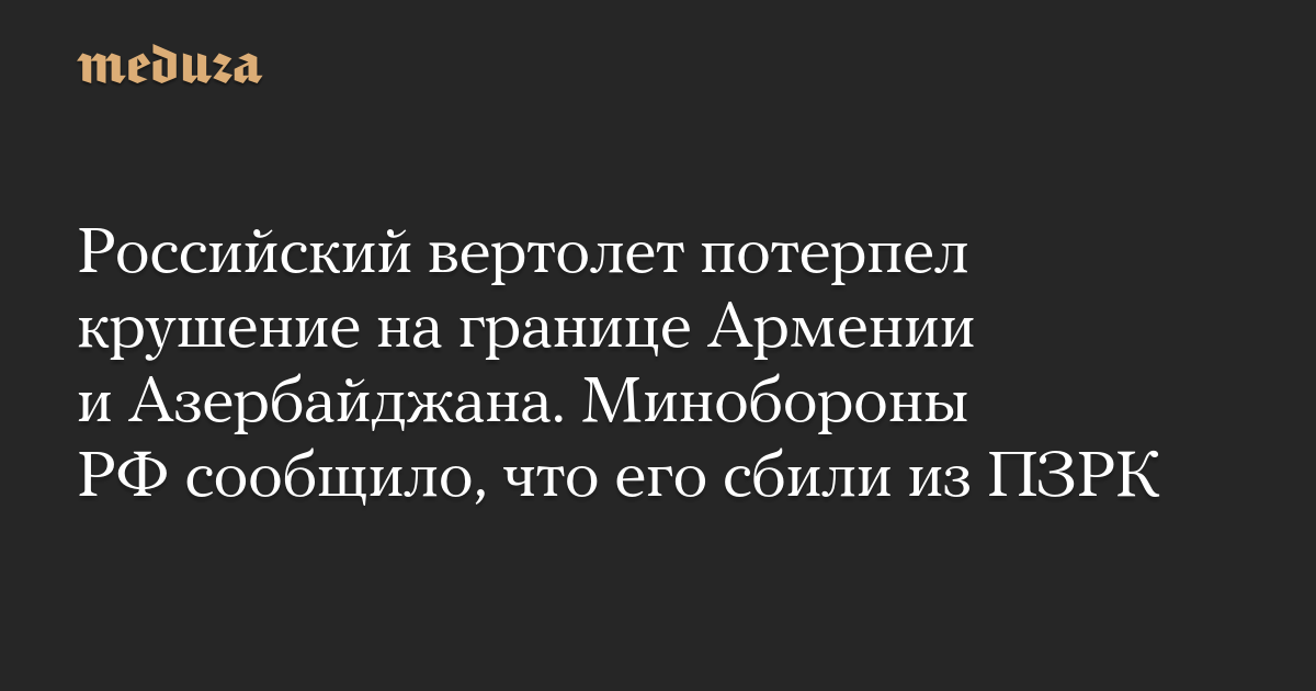 Российский вертолет потерпел крушение на границе Армении и Азербайджана. Минобороны РФ сообщило, что его сбили из ПЗРК