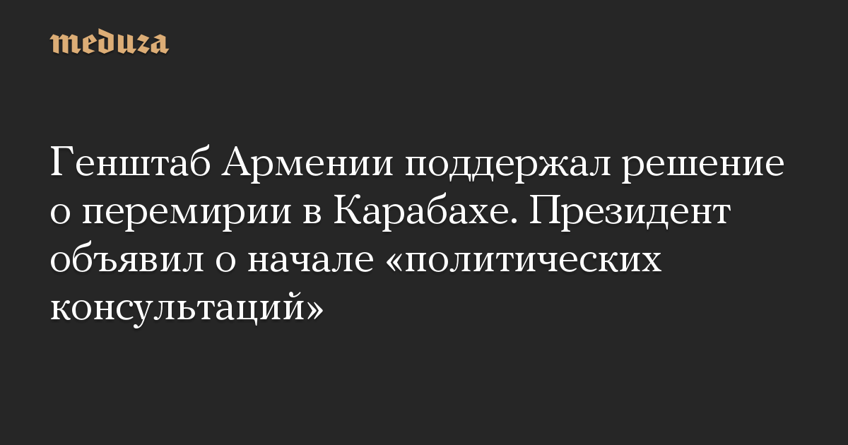 Генштаб Армении поддержал решение о перемирии в Карабахе. Президент объявил о начале «политических консультаций»
