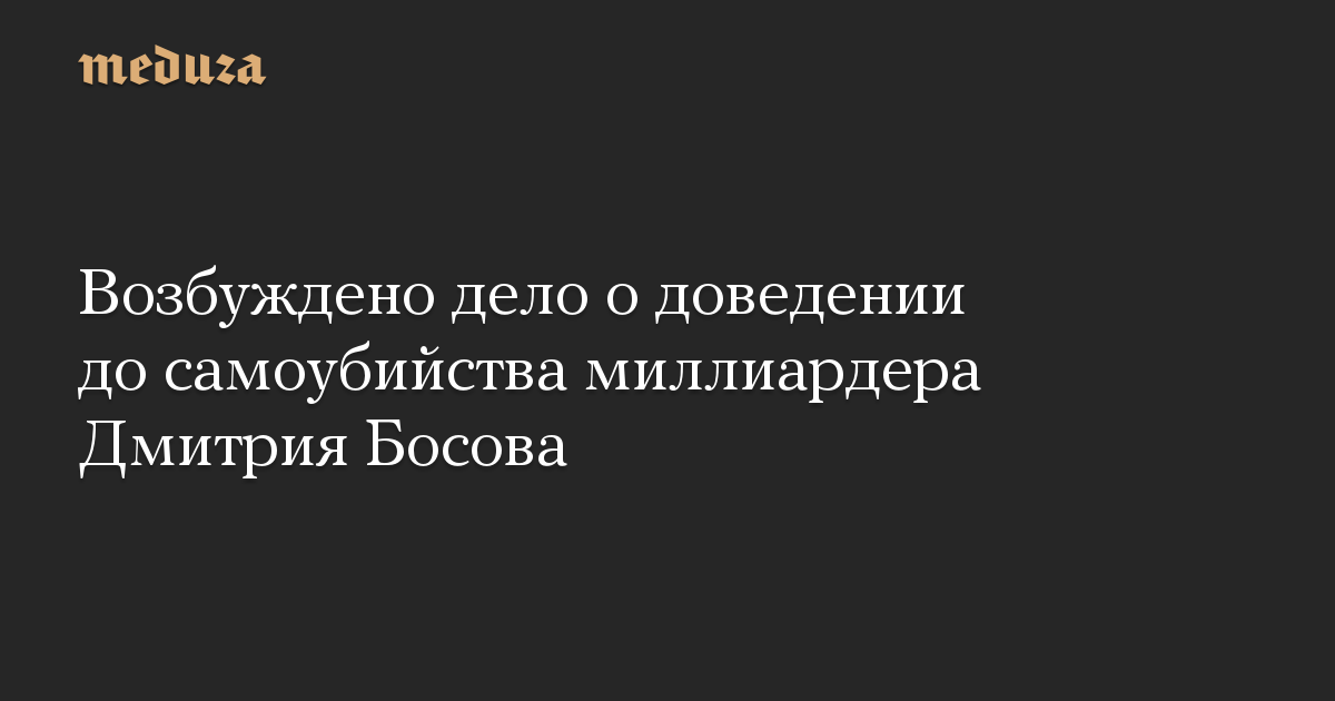 Возбуждено дело о доведении до самоубийства миллиардера Дмитрия Босова
