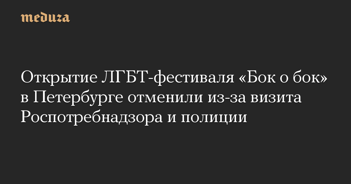 Открытие ЛГБТ-фестиваля «Бок о бок» в Петербурге отменили из-за визита Роспотребнадзора и полиции