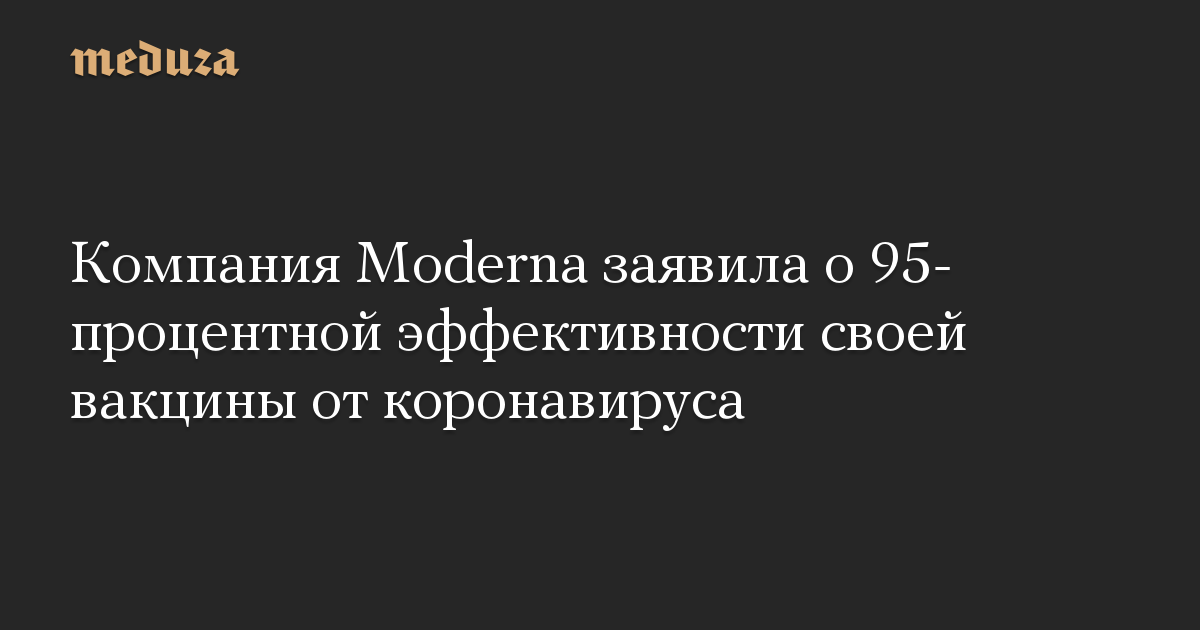 Компания Moderna заявила о 95-процентной эффективности своей вакцины от коронавируса