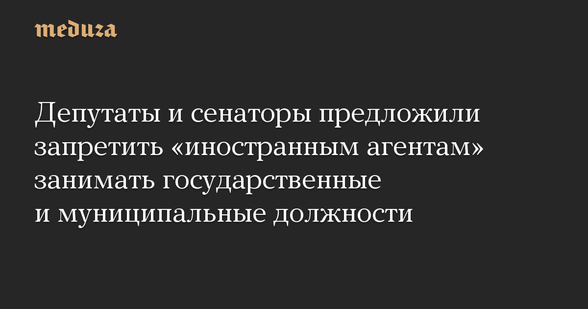 Депутаты и сенаторы предложили запретить «иностранным агентам» занимать государственные и муниципальные должности