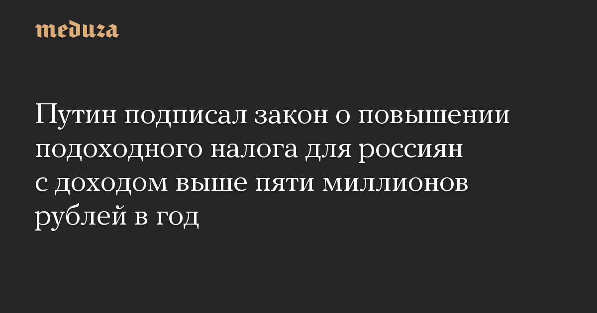 Путин подписал закон о повышении подоходного налога для россиян с доходом выше пяти миллионов рублей в год
