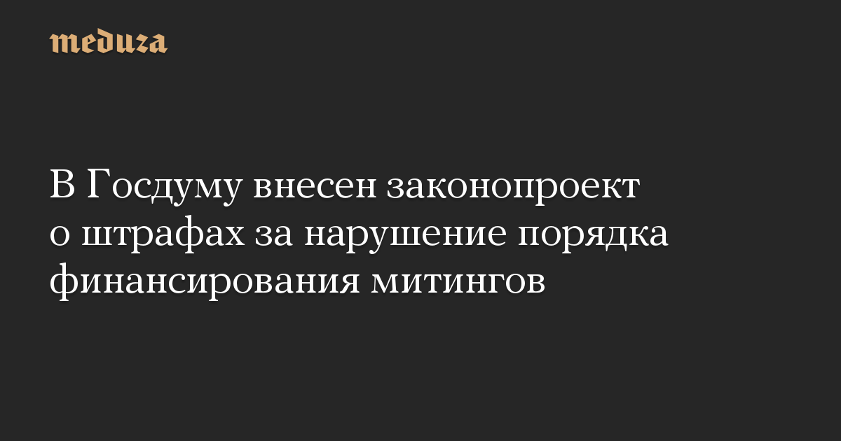 В Госдуму внесен законопроект о штрафах за нарушение порядка финансирования митингов