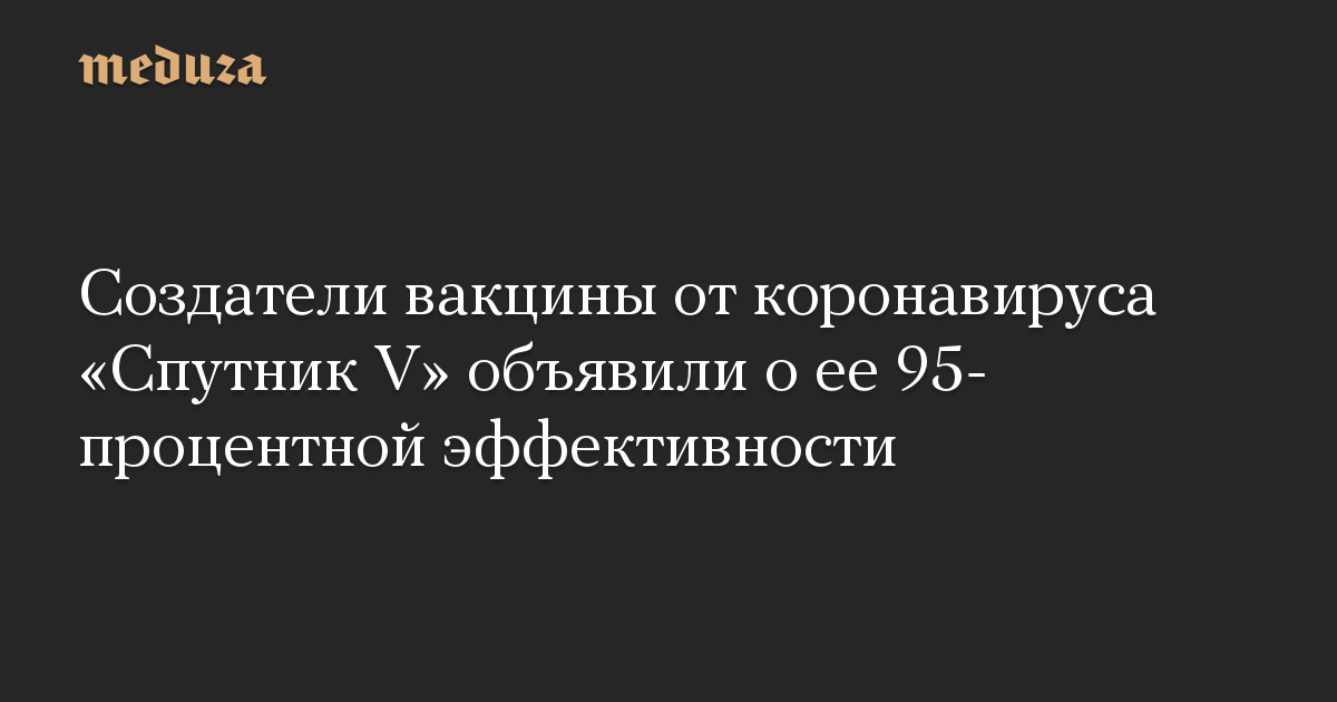 Создатели вакцины от коронавируса «Спутник V» объявили о ее 95-процентной эффективности