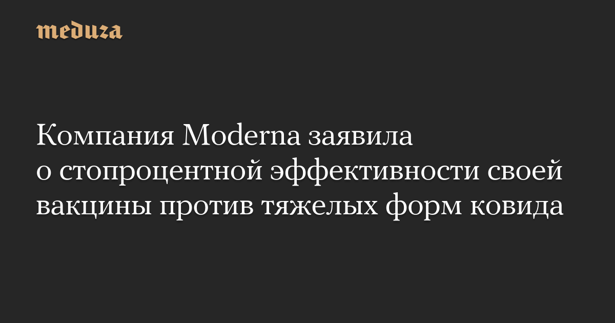 Компания Moderna заявила о стопроцентной эффективности своей вакцины против тяжелых форм ковида