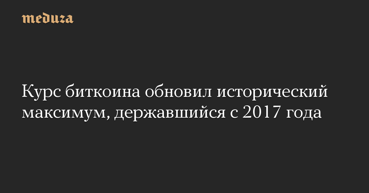 Курс биткоина превысил исторический максимум, зафиксированный в 2017 году.