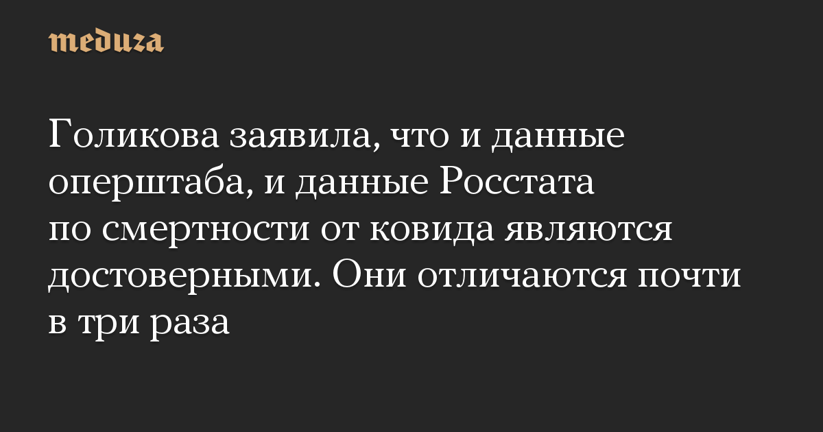 Голикова заявила, что и данные оперштаба, и данные Росстата по смертности от ковида являются достоверными. Они отличаются почти в три раза