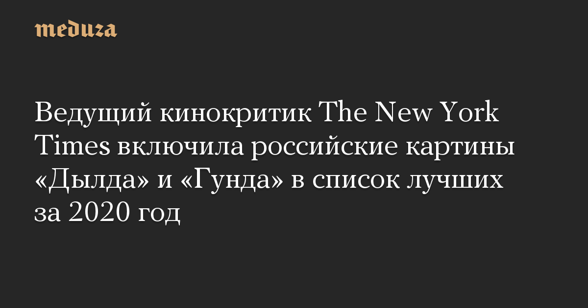 Ведущий кинокритик The New York Times включила российские картины «Дылда» и «Гунда» в список лучших за 2020 год