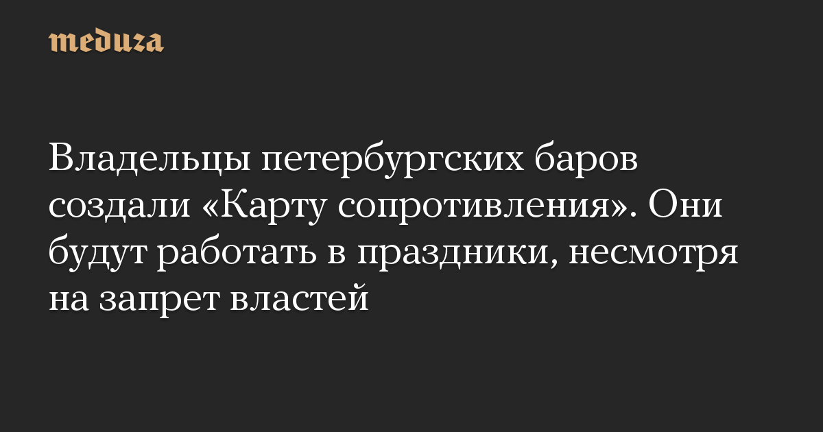 Владельцы петербургских баров создали «Карту сопротивления». Они будут работать в праздники, несмотря на запрет властей