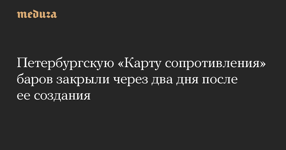 Петербургскую «Карту сопротивления» баров закрыли через два дня после ее создания
