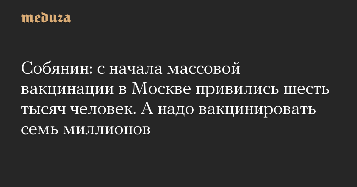 Собянин: с начала массовой вакцинации в Москве привились шесть тысяч человек. А надо вакцинировать семь миллионов
