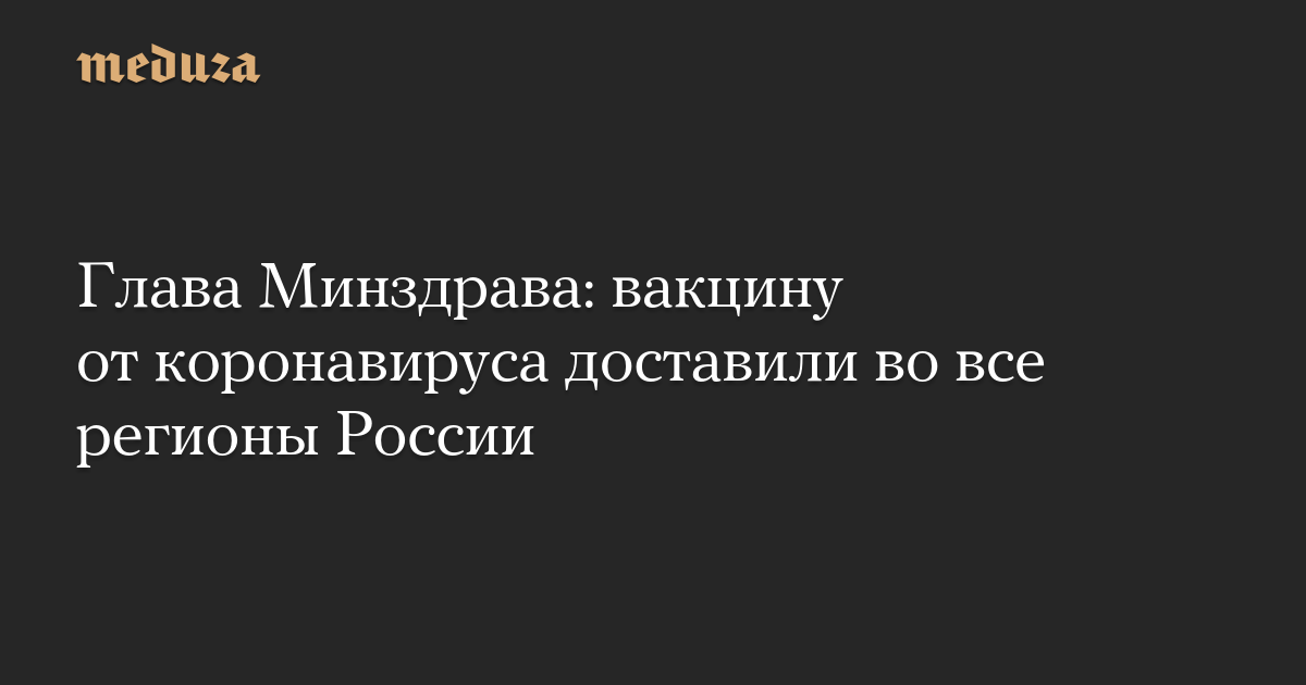 Глава Минздрава: вакцину от коронавируса доставили во все регионы России