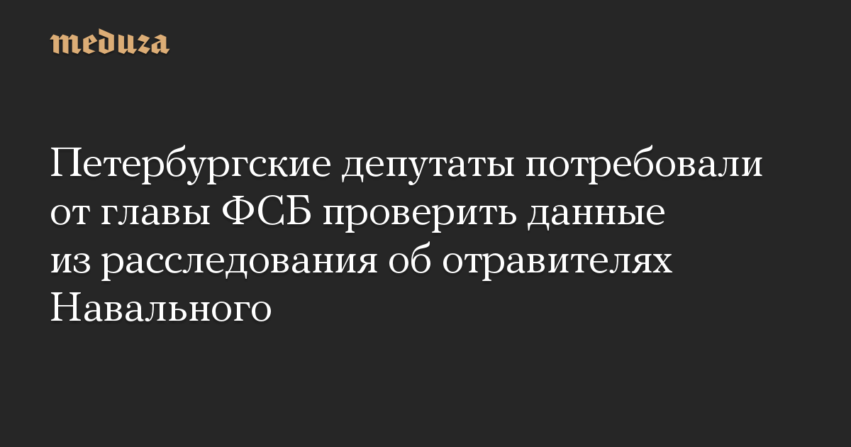 Петербургские депутаты потребовали от главы ФСБ проверить данные из расследования об отравителях Навального