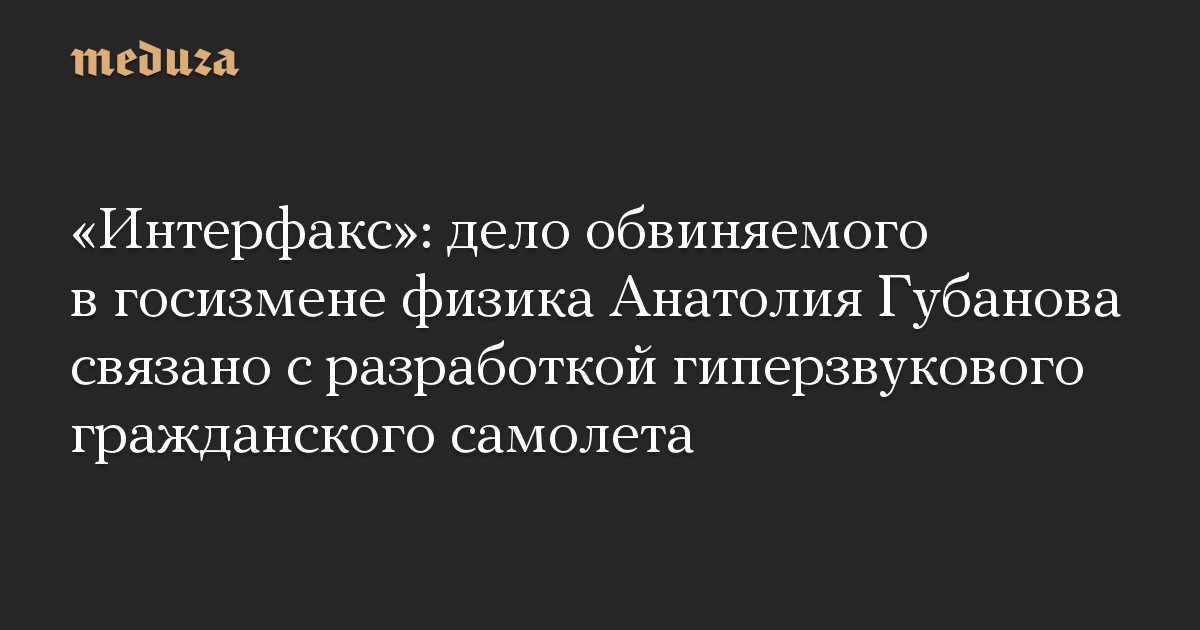 «Интерфакс»: дело обвиняемого в госизмене физика Анатолия Губанова связано с разработкой гиперзвукового гражданского самолета