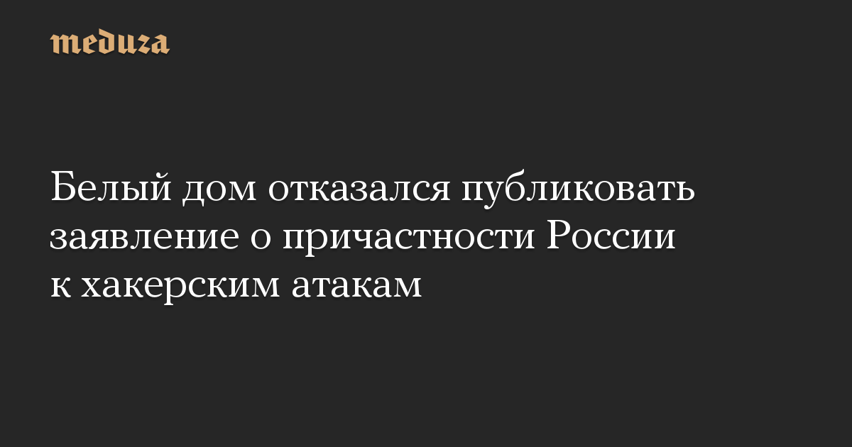 Официальные лица в Белом доме планировали днем 18 декабря обнародовать заявление, в котором Россия называлась «главным действующим лицом» новой кибератаки на американское правительство, но в последний момент получили указание отменить публикацию документа.