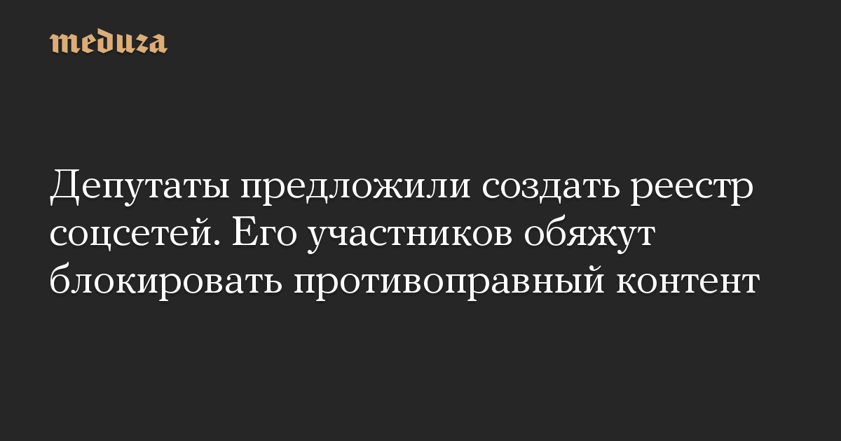Депутаты Госдумы предложили создать реестр социальных сетей, участников которого обяжут мониторить опубликованный контент и блокировать противоправную информацию.