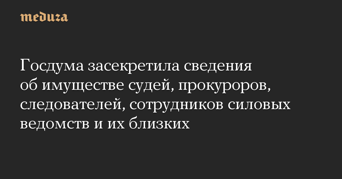 Госдума засекретила сведения об имуществе судей, прокуроров, следователей, сотрудников силовых ведомств и их близких