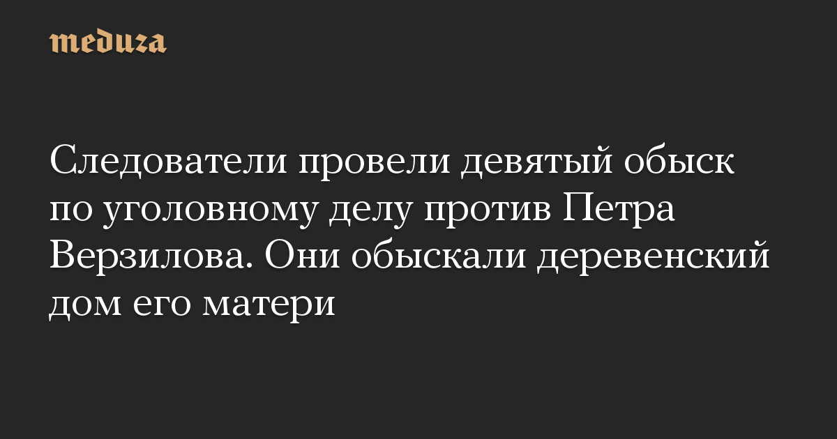 Следователи провели девятый обыск по уголовному делу против Петра Верзилова. Они обыскали деревенский дом его матери