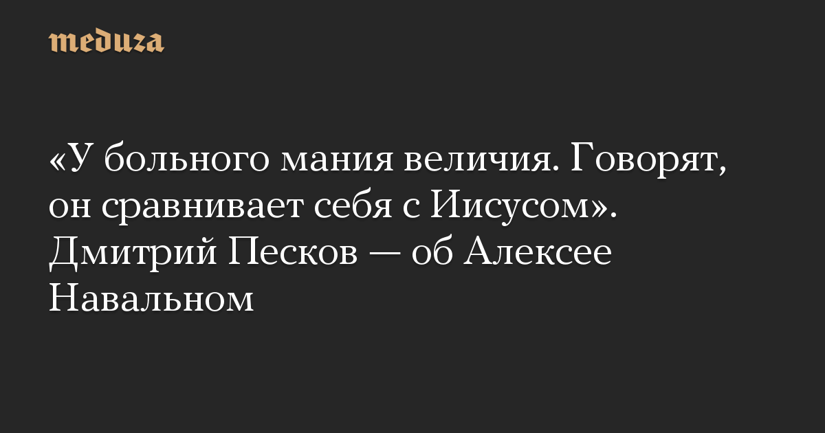 «У больного мания величия. Говорят, он сравнивает себя с Иисусом». Дмитрий Песков — об Алексее Навальном