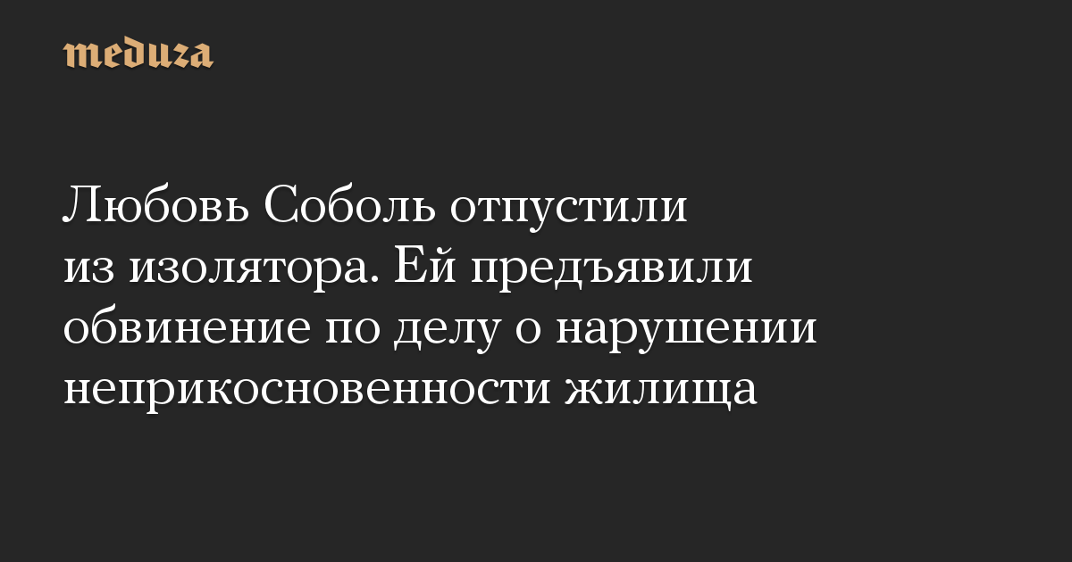 Любовь Соболь отпустили из изолятора. Ей предъявили обвинение по делу о нарушении неприкосновенности жилища