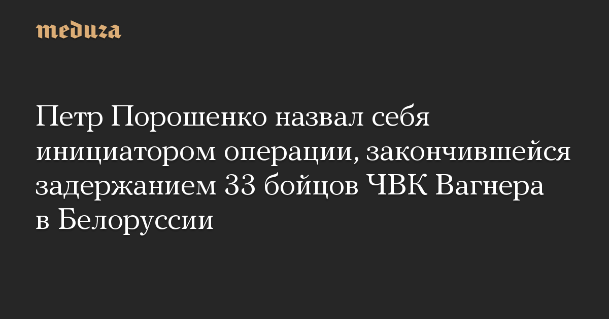 Бывший президент Украины Петр Порошенко подтвердил, что задержание 33 бойцов ЧВК Вагнера в Белоруссии стало следствием спецоперации спецслужб, которые пытались выманить их из России на Украину. Такое заявление он сделал в эфире «5 канала».