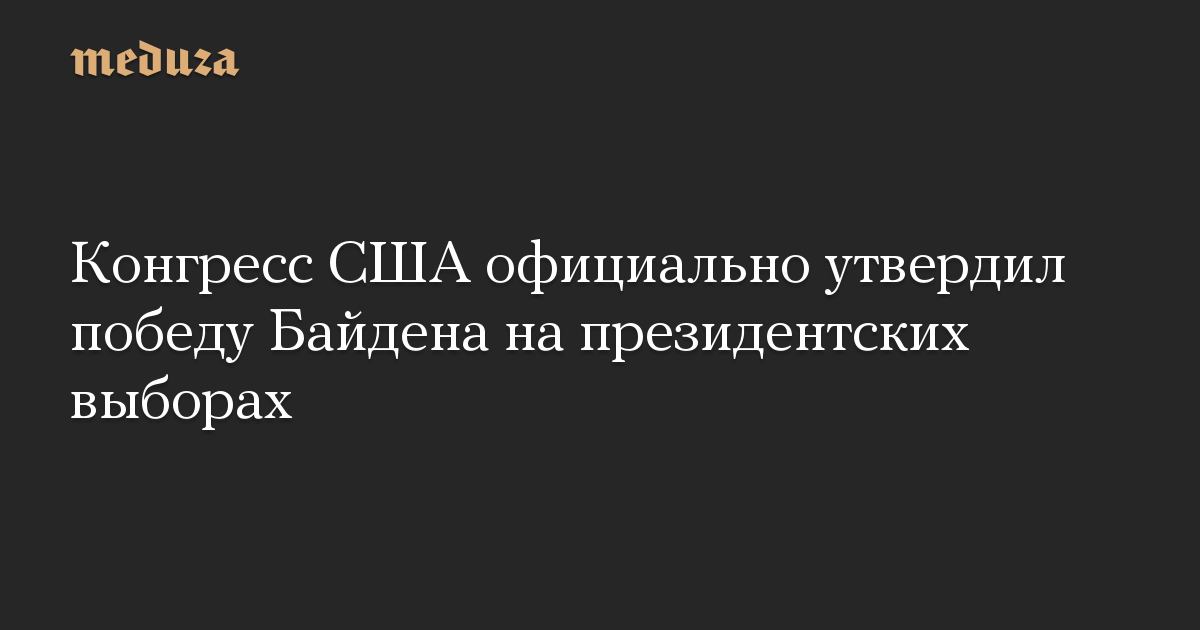 Конгресс США на специальном заседании утвердил победу кандидата от демократов Джо Байдена на выборах президента, которые прошли в ноябре.