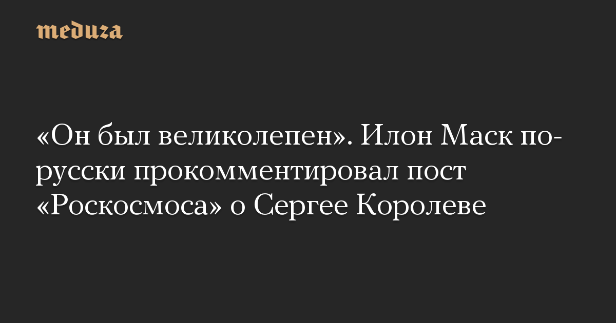 «Он был великолепен». Илон Маск по-русски прокомментировал пост «Роскосмоса» о Сергее Королеве
